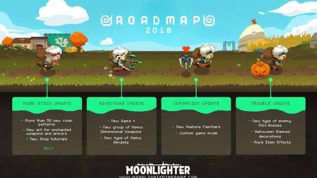 Moonlighter prepara su llegada a Nintendo Switch, pero eso no es lo único en lo que ha estado trabajando el estudio Digital Sun Games: han detallado cuáles serán las próximas actualizaciones gratuitas que recibirá este juego de rol con elementos de rogue-like.