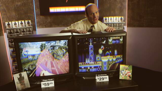Sega ha presentado un vídeo de Sonic Mania Plus que imita el estilo de los anuncios en los años 90, en concreto los infocomerciales, al que han aplicado efectos para imitar un estilo retro. En él un vendedor intenta destacar Finger Guns, un shooter genérico, mientras que el comprador está más interesado por el juego de Sega.