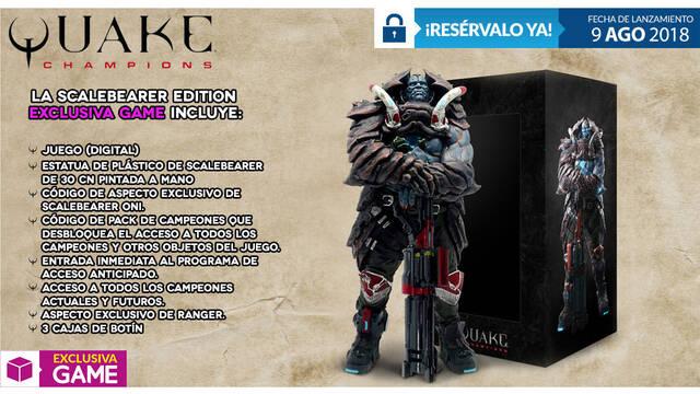 GAME ha anunciado que venderá en exclusiva la completa Scalebearer Edition para Quake Champions, una versión de coleccionistas del juego de acción multijugador Quake. Entre otros atractivos, incluye una estatua del conocido personaje pintada a mano de unos 30 centímetros. Llegará a PC el próximo 9 de agosto y ya puede reservase en tienda y web.