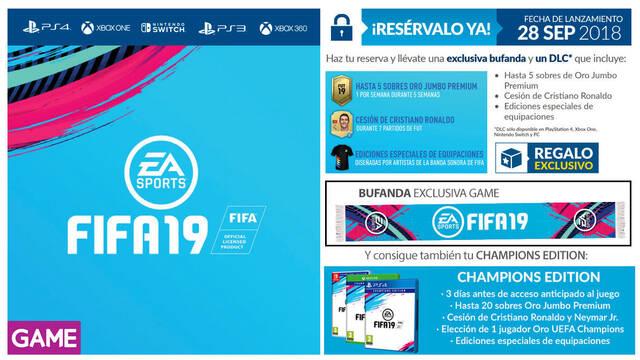 GAME ha anunciado su incentivo por reserva exclusivo para FIFA 19, que por primera vez en la historia de la saga de simulación deportiva de EA, incluye la licencia de la Champions League. La cadena de tiendas ha anunciado que todos aquellos usuarios que decidan guardar su copia del juego, sin importar la edición que sea, recibirán una bufanda exclusiva con motivos del juego.