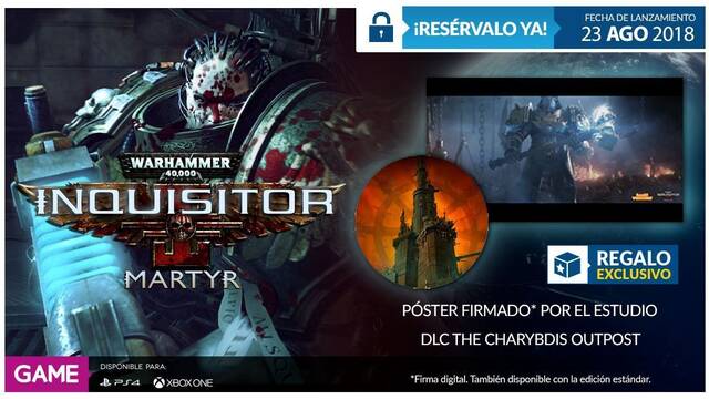 GAME ha anunciado sus ediciones exclusivas e incentivos por reserva para Warhammer 40.000: Inquisitor - Martyr, el nuevo juego de rol y acción ambientado en el universo futurista de Games Workshop. El videojuego, que llegará el 23 de agosto a Xbox One y PS4 -y que está disponible desde junio en PC- tendrá dos nuevas ediciones en la cadena tienda, cada una con contenido exclusivo GAME.