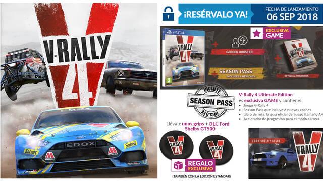 GAME ha anunciado la edición exclusiva y los incentivos por reserva que tendrá V-Rally 4 en sus tiendas. La vuelta de la popular saga de conducción de rally y off-road, que se ha presentado en España, se pondrá a la venta el día 6 de septiembre en Xbox One y PS4, y un poco más tarde en PC y Switch. En cualquier caso, GAME ha confirmado que venderá en exclusiva la edición Ultimate Edition y que ofrecerá grips para los joystick y un DLC con el Ford Shelby GT 500 como incentivo.