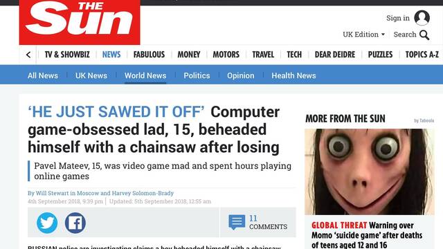 The Sun, uno de los medios más sensacionalistas de la prensa amarilla británica, ha vuelto a cargar contra los videojuegos. Tras culpar a los juegos de ataques terroristas y cebarse con la violencia doméstica en el reciente Detroit: Become Human, el tabloide ha responsabilizado a los juegos online del suicidio de un menor en Rusia.