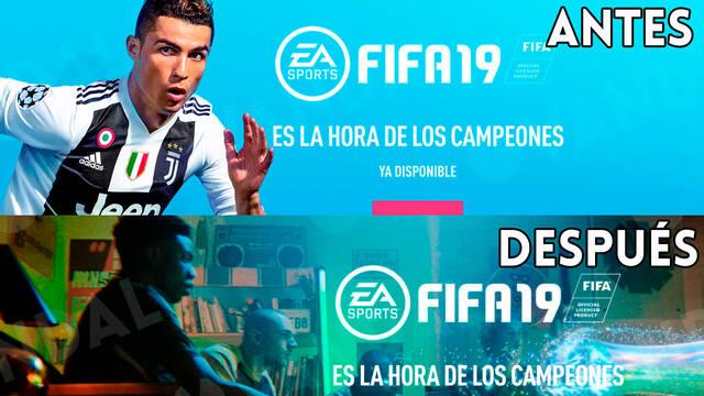 Del mismo modo, al navegar por el menú y poner el ratón sobre FIFA 19, la imagen de portada del astro portugués aparecía en el fondo de la página. Ahora no hay absolutamente nada.