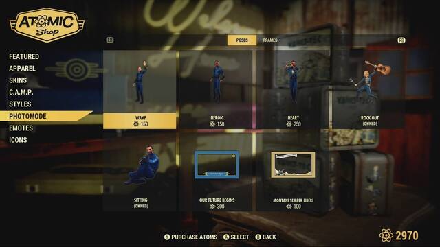 A su vez, Bethesda indica que actualizará "con regularidad" la Tienda Atómica, de manera que los jugadores siempre encontrarán nuevas opciones de compra.
