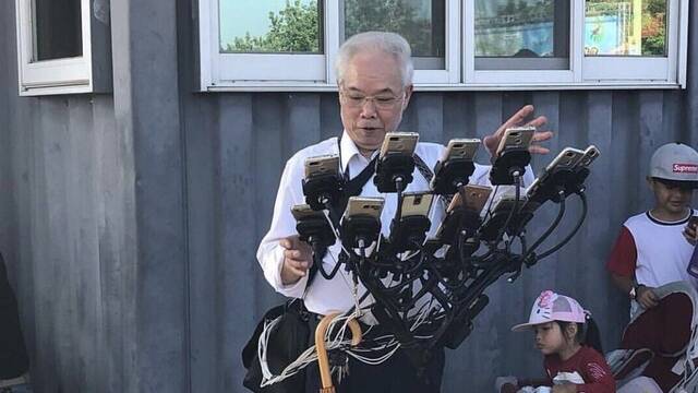 San Yuan adora Pokémon GO a niveles casi obsesivos, pero también adora caminar y seguir ciertas reglas de urbanidad. Por eso, y dado que con su bicicleta era muy rápido pero no podía acceder a todos los lugares de forma cómoda, ha querido ingeniárselas con un nuevo soporte que le permite llevar 12 teléfonos inteligentes y una batería extra para todos ellos y tener aún más versatilidad en su movilidad por las calles de su localidad natal.
