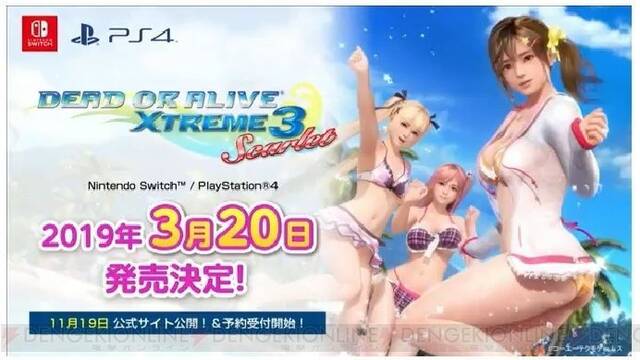 A través de la revista japonesa Dengeki, Koei Tecmo ha anunciado que está trabajando en Dead or Alive Xtreme 3: Scarlet. El juego se lanzará en PlayStation 4 y Nintendo Switch el 20 de marzo de 2019 en Japón.