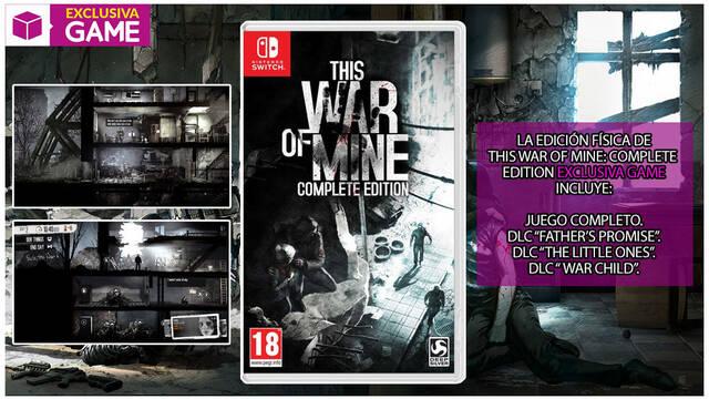 GAME ha detallado que venderá, de forma exclusiva, la edición en formato físico de This War of Mine para Nintendo Switch. Llamada This War of Mine: Complete Edition incluye el juego original, además de todos sus contenidos descargables lanzados hasta la fecha como Father’s Promise, The Little Ones y War Child. Saldrá el 27 de noviembre.