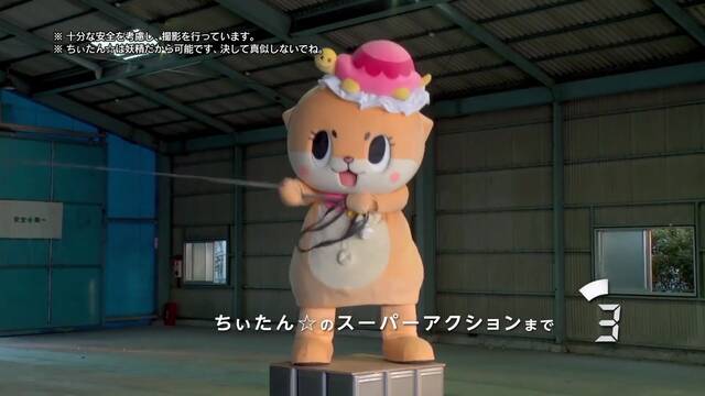 Lanzarse con una cuerda contra unos bloques, correr contra un enorme ventilador o saltar con un paraguas desde el aire, entre otras locuras, que son especialmente divertidas (y fallidas) por el disfraz de Chiitan que lleva el encargado de realizarlas.