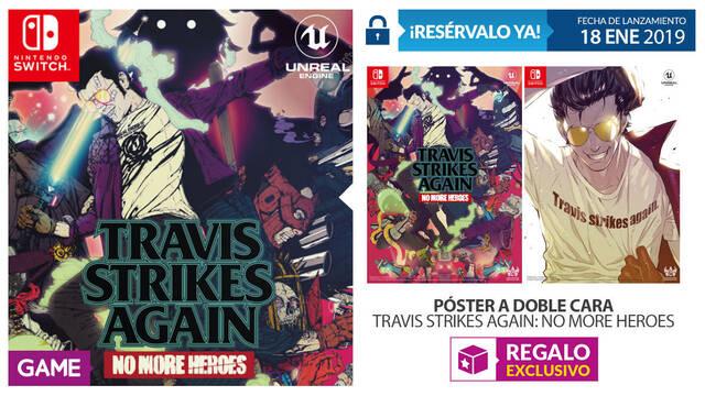 Los jugadores que reserven Travis Strikes Again: No More Heroes que tiene un precio de 39,95€, recibirán de regalo un póster a doble cara.