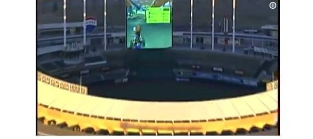 "Por cierto, entiendo totalmente por qué los Royals querían más velocidad", bromeaba el periodista. La pantalla Crown Vision del Kauffman Stadium mide 25x32 metros. En 2007 estaba considerada la pantalla LED más grande del mundo.