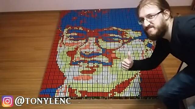Componiendo con inteligencia, y combinando de manera impecable las pocas y limitadas variedades cromáticas del cubo -compuestas por el rojo, el blanco, el azul, el verde o el amarillo-, el youtuber consigue recrear rostros de maneras bastantes inteligentes.