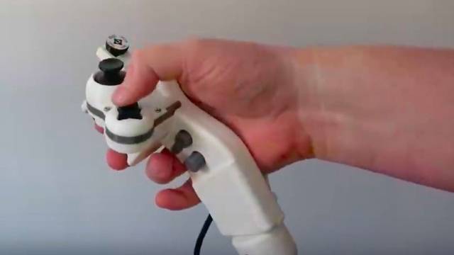 Heck pasó cierto tiempo probando formas hasta que se sintió cómodo y pasó al prototipo o diseño final, un mando que nos recuerda a algunos joystick de simuladores de vuelo.