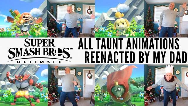Nick Luciano es conocido por subir vídeos a su canal de YouTube donde convence a sus familiares para que representen animaciones de videojuegos, emotes o bailes. En esta ocasión, consiguió que su padre imitara las más de 200 provocaciones de la entrega más reciente de Smash Bros.