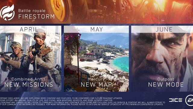 El primer contenido en llegar es Firestorm, un modo battle royale con vehículos y destrucción de escenarios para 64 jugadores desarrollado por Criterion, y que ofrecerá algunas de las situaciones más espectaculares que hemos visto nunca en un Battlefield.