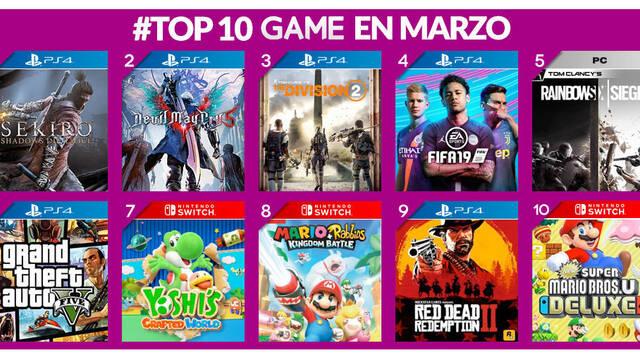 El juego protagonizado por el habilidoso shinobi está seguido por Devil May Cry 5 en segunda posición; mientras que Tom Clancy's The Division 2 cierra el pódium con el tercer puesto.