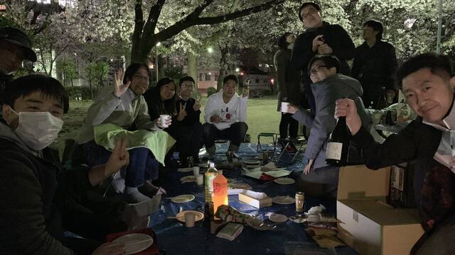 It was a joint cherry-blossom viewing of the DMC 5 team and the new project team.