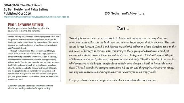 Esta misión, ambientada en la expansión Elsweyr, contenía un copia de la historia la aventura de Dragones y Mazmorras titulada The Black Road. No hablamos de simples referencias o de un contenido inspirado. Se trataba de una copia casi frase por frase, con apenas diferencias para adaptar la idea al universo de fantasía de The Elder Scrolls Online.