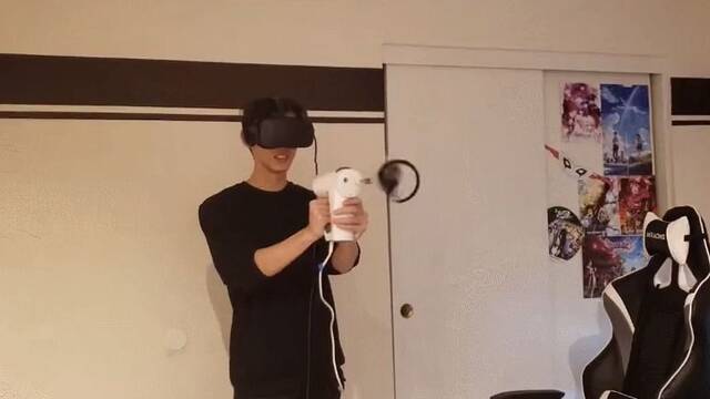 Pensando que sería realmente fácil de adaptar al controlador de Oculus, se dispuso a pegar la pieza para batir al mando de Oculus.