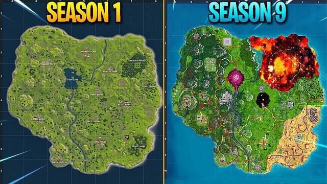 La isla de Fortnite Battle Royale es la que sufre y padece los continuos cambios que introduce Epic Games. Desde sus comienzos en la primera temporada hasta el enorme volcán de la temporada 8, el mapa de la isla ha cuenta con desiertos, zonas heladas, cráteres de meteoritos, un lago corrompido y zonas boscosas que todavía parecen resistir a los devenires del juego.