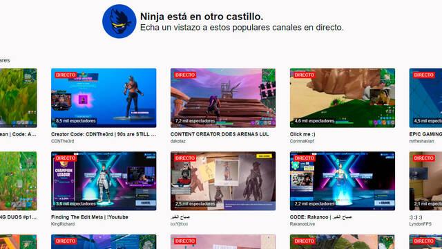Ahora los visitantes al canal podrán leer "Ninja está en otro castillo" -un guiño a la frase de Mario Bros.- y el mensaje "echa un vistazo a estos populares canales en directo". Debajo aparece una serie de directos de otras cuentas.