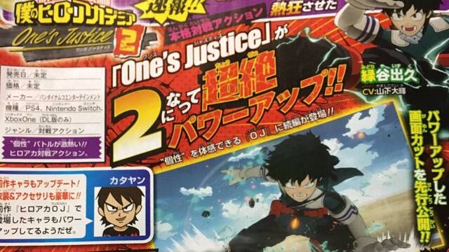 Bandai Namco ha anunciado My Hero One's Justice 2 para PlayStation 4, Xbox One, y Switch. Lo ha hecho a través de la prestigiosa Weekly Jump, confirmando además que la edición de One tendrá edición únicamente digital en Japón. De momento no ha trascendido la fecha de lanzamiento.