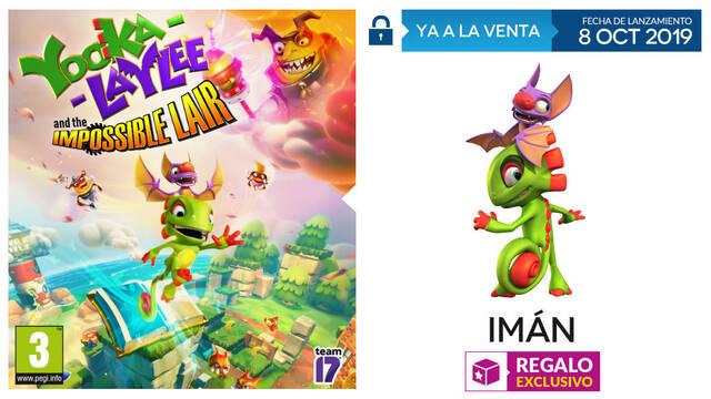La cadena de tiendas GAME quiere que le demos una calurosa bienvenida a Yooka-Laylee and the Impossible Lair, título desarrollado por Playtonic Games y Team 17 que llega hoy 8 de octubre al mercado, tanto para PC, PS4, Xbox One y Nintendo Switch. Aquellos jugadores que compren este divertido juego de plataformas en su versión de consolas, recibirán de regalo un exclusivo imán como el que os mostramos a continuación: