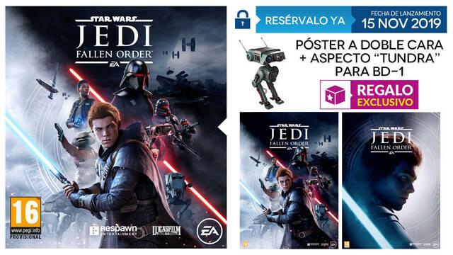GAME ha detallado sus incentivos por reserva y ediciones para Star Wars: Jedi Fallen Order, el nuevo videojuego de Star Wars bajo la edición de EA y el desarrollo de Respawn. El título llegará el próximo 15 de noviembre en varias ediciones a GAME, contando con un regalo en forma de póster a doble cara y un DLC con un aspecto exclusivo para nuestro droide BD-1. En la cadena de tiendas encontraremos dos versiones del juego en forma de Deluxe Edition, exclusiva de GAME y Edición Estándar.