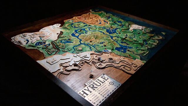 Para su realización ha utilizado tanto madera como resina epoxi para dar forma a Hyrule en un mapa de grandes dimensiones.