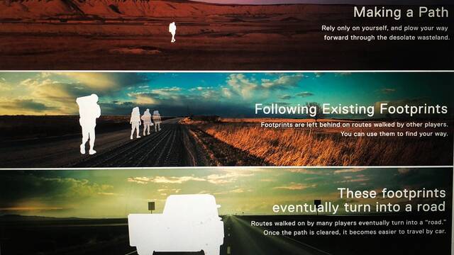 - Estas huellas se transformarán en carreteras. Las rutas que han seguido muchos jugadores son caminos sin obstáculos y se hace más fácil viajar con coche.