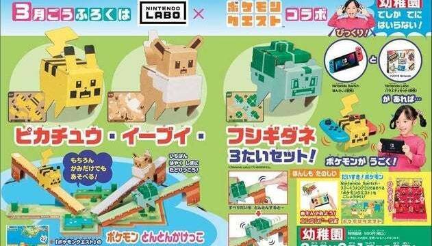 Según señala Japanese Nintendo, el número de marzo de 2020 de la revista japonesa Yochien incluirá diseños de Pokémon hechos de cartón, que apuntan a ser utilizados en Nintendo Labo para que los usuarios jueguen con ellos. En la imagen, que os dejamos a continuación, podemos ver diferentes modelos: uno pertenece a Pikachu, otro a Eevee y otro a Bulbasaur.