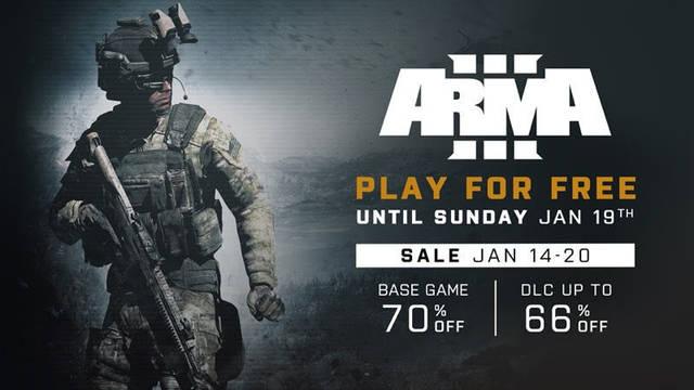 Aquellos jugadores que quieran disfrutar de un juego de acción y disparos, tienen la oportunidad de ponerse a los mandos de ArmA 3. El aclamado juego de Bohemia Interactive se puede jugar de forma gratuita en PC a través de Steam durante los próximos cuatro días, hasta el 19 de enero. Además, si el juego te gusta mucho, puedes aprovechar la siguiente oferta: su precio está rebajado un 70%, por lo que puedes adquirir el título por 8,39 €. No sólo eso: los diferentes DLC y packs del juego también están disponibles por un precio reducido.