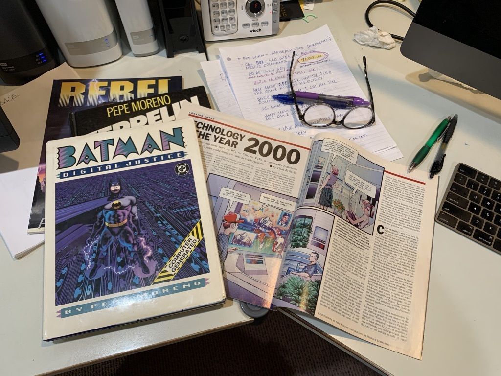 Después le encargaron Batman: Digital Justice. "Mi filosofía en la vida es di que sí y luego ya ves cómo hacerlo", asevera el entrevistado, así que luego hubo que inventar la división por colores "a pelo con la editorial Anaya, en Madrid, que eran pioneros en la separación de color que luego vendimos a Photoshop: CMYK, RGB…" nos cuenta Moreno. Las limitaciones técnicas eran muy grandes, "solo podíamos tener 256 colores por página", explica.