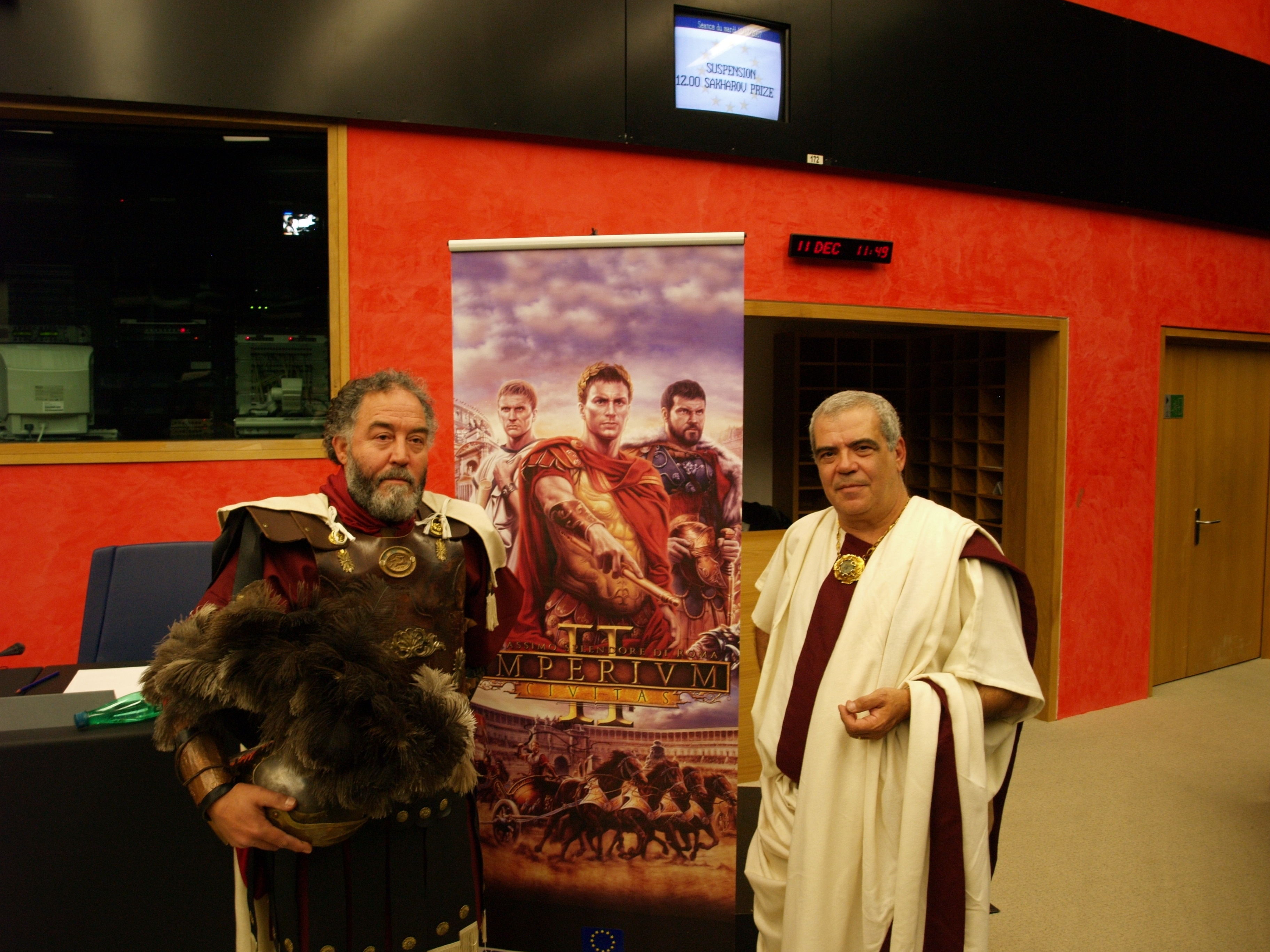 Durante la producción de Imperivm Civitas Moreno conoció a un italiano experto en Roma clásica y, cuenta: "Me lleva a su casa y me encuentro un minicirco romano, tenía una finca y había creado una escuela de gladiadores, tenía en un almacén catapultas romanas y escorpiones hechos con los materiales que usaban los ejércitos, uniformes hechos con los materiales clásicos porque no quería usar nada nuevo, juguetes que usaban los legionarios para los ratos muertos…", aquel hombre diseñó unas monedas romanas que formaron parte del dosier de prensa del juego y estuvo vestido como un senador romano en la presentación en el Parlamento Europeo.