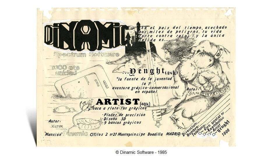 Pablo nos remite a un post que escribió en Facebook recordando aquellos momentos con motivo del fallecimiento el año pasado de Santiago Morga, "me encantaría que pudiéramos dedicar la entrevista a la memoria de Santiago", dice. Los hermanos se habían comprometido a publicar un anuncio en la revista ZX invirtiendo todo el dinero que tenían. Ese anuncio llevaría un cupón que el comprador debía rellenar con su dirección y enviarlo en un sobre "Mansión Dinamic" [la casa de los Ruiz Tejedor] indicando si pagaba mediante giro postal o contrarreembolso. Morga fue el encargado de dibujar lo que querían con un cuaderno, Rotrings y Letraset (tipografías que se transferían al papel letra a letra para rotular). "Santiago empezó con los borradores a lápiz del guerrero de Yenght y el castillo donde se desarrollaba la aventura. Todos nos emocionamos. Era justo lo que queríamos. Sólo quedaba pasarlo a tinta" contaba Ruiz en Facebook. Para Artist diseñaron otro dibujo y luego los unieron. Estuvieron toda la noche anterior a la entrega del anuncio diseñándolo, y le añadieron el logo de Dinamic, realizado en 3D horas antes por otro amigo de los hermanos, Óscar Ramos.