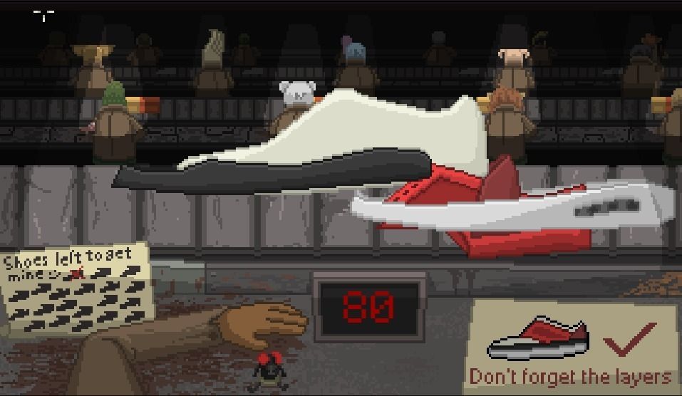 Tras un par de años así decidió cambiar y volver a crear él solo algo en Construct aplicando todo lo que había aprendido desde aquel primer juego, "y Ludipe [Luis Díaz Peralta] me enseñó bastante de cómo funcionaba", recuerda. La idea era crear en solitario un juego pequeño y personal, "hice una [jam], creo que era Ludum Dare también, y me salió bastante guay, era montar zapatos en una fábrica y cada vez que hacías un zapato se reducía el tiempo. Por diseño, era imposible terminarlos todos, la premisa era que hay mucha gente trabajando en una fábrica en algo que no se podrían permitir, me vuela la cabeza pensar que eso es así".
