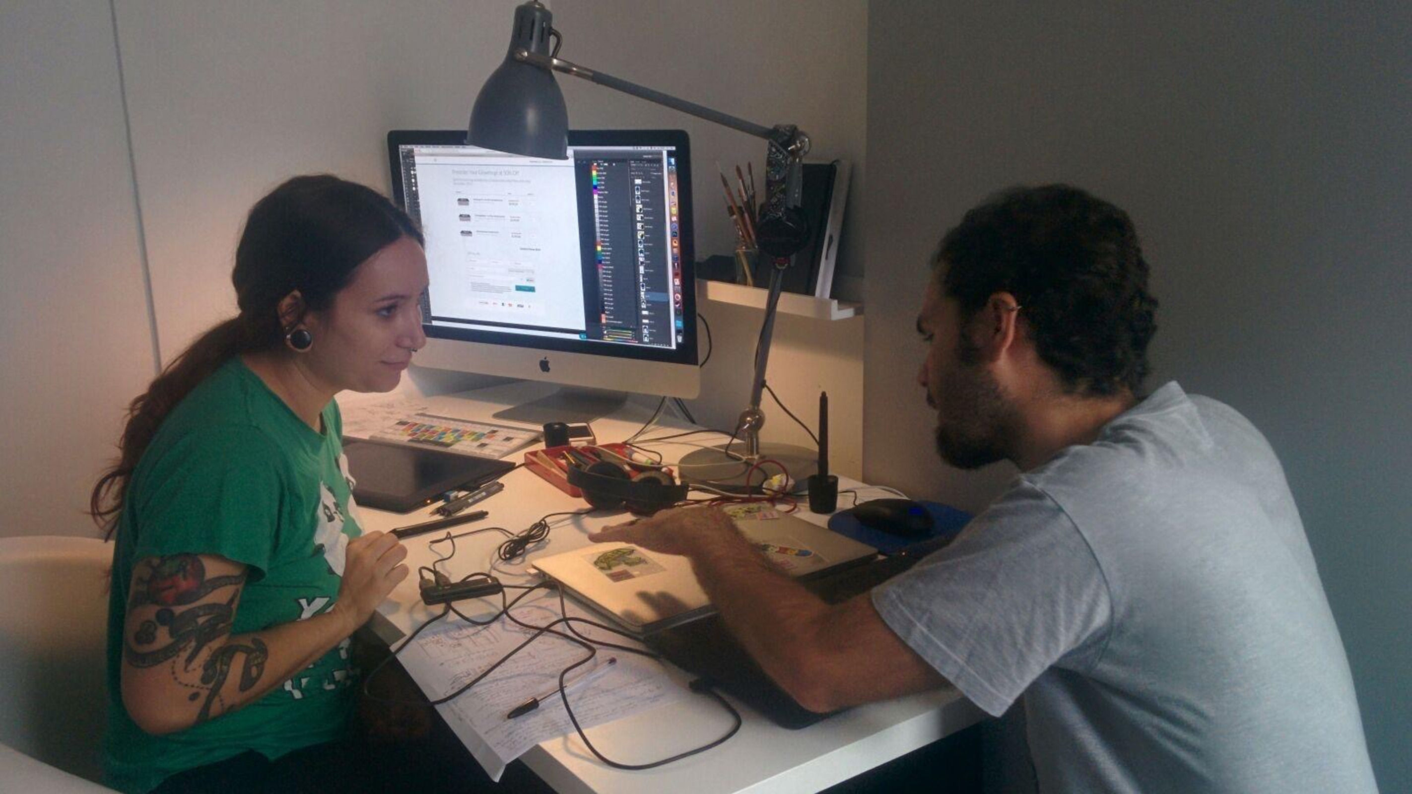 Gálvez se encargó de la programación y creó un motor propio para aventuras gráficas en Java, su especialidad por entonces. "En esa época, 2012, Unity no estaba tan guay como está ahora. Se nos hizo muy cuesta arriba porque para hacer un juego 3D sí estaba guay pero para uno 2D, no. No tenía todas las herramientas y los plug in que hay ahora y él se vio mucho más cómodo haciéndose su mini motor, aunque fuera mucho más limitado pero con un lenguaje que controlaba", apunta Valls. Para ella no fue un paso fácil. En aquel primer primer juego se aferró al papel: "La gente ni se da cuenta, pero los dibujos de Mechanika están hechos en papel, escaneados y luego coloreados en Photoshop, pero el dibujo no está hecho en ordenador porque yo todavía no me veía capaz de dibujar fluidamente en una Wacom, en un soporte digital 100%. Fue durillo" dice mientras saca un abultado archivador con todos los dibujos en papel sulfurizado de las animaciones y escenarios hechos en rotulador. Mechanika sirvió para empezar la transición al dibujo digital. Los dos escribieron el guion aunque, puntualiza Valls, los diálogos y la escritura son de Gálvez, "yo le supervisé el tono, los personajes, como son mis creaciones visuales, le doy el visto bueno, pero todo el humor y lo que está escrito es de Javi", añade.