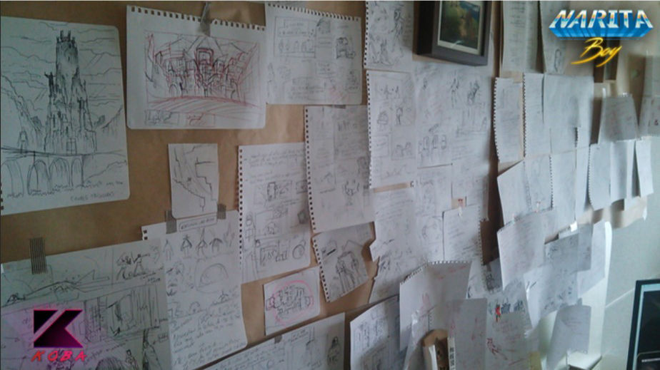 Tras consultar con su mujer, "una de mis grandes suertes es que siempre ha confiado en mis locuras", dice. A principios de 2016 se acogió al paro y empezó a trabajar desde su casa. "Había tres pitches de juegos que quería hacer y el que salió fue Narita Boy", nos cuenta. "Estaba yo con mis ideas como si fuese el retrato de un asesino en serie, con cientos de papeles en la pared. Luego las cosas fueron tomando forma, dije ‘haremos un kickstarter. Vamos a hacer un tráiler’. Empecé con ‘el mundo de las ideas’ y, cuando ya tenía más o menos el personaje, de qué iba a ir la historia y tal, ya hice el tráiler. Es empezar la casa por el tejado, pero pensé que era una buena forma de darle un sentido narrativo, estético y una intensidad a algo que no existe y, a la vez, voy viendo el tono. Fue un poco improvisado, pero yo no tenía dinero para montar un estudio, contratar peña, hacer un juego… Lo probé con unos chicos franceses en Tokio, con uno (porque el otro rápido saltó del barco) que me dijo ‘ya tenemos el personaje corriendo’ y habían pasado tres semanas, pensé que así no íbamos a terminar nunca. Yo no soy de esa filosofía de ‘trabaja conmigo dos años en tu tiempo libre y ya te pagaré’, por eso me decidí a ir al tráiler y al Kickstarter, pam, de una". La música la compuso Salvador Salvinsky Fornieles, hermano del entrevistado, que también se ha encargado de los efectos especiales de Narita Boy.
