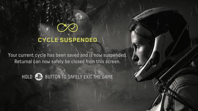 La actualización 2.0 de Returnal incluye una nueva función llamada 'Suspender ciclo' que básicamente permite detener la partida en cualquier momento sin perder el progreso. "Os permitirá pausar el ciclo para continuarlo más tarde, de modo que podréis salir del juego y apagar la consola sin perder el progreso de la sesión", dice Harry Krueger, director de Returnal, en un artículo en español publicado en PlayStation Blog.