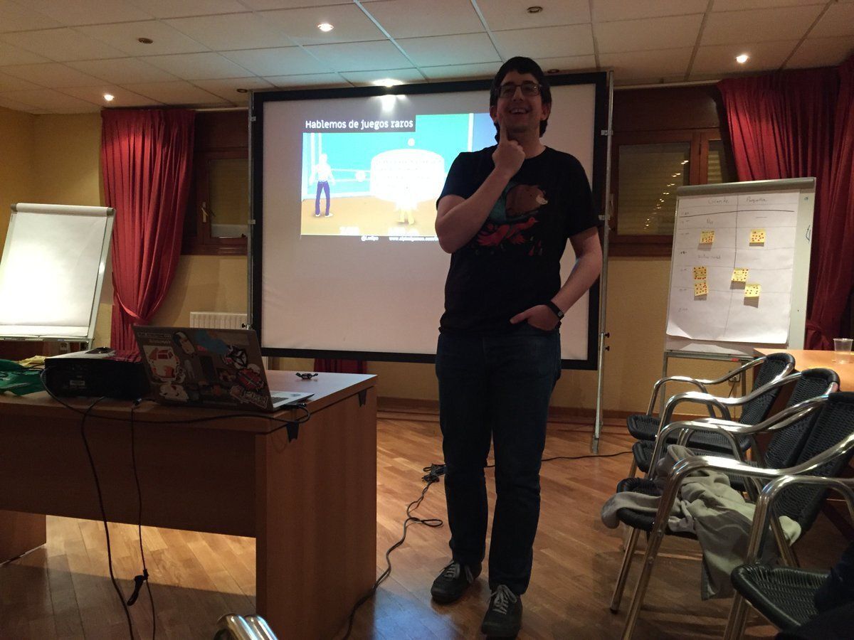 Sí, peleo mucho con la gente que dice que no va a apuntarse a una game jam porque no tiene experiencia. Olvídate, puedes hacer un juego de mesa, puede hacer un juego en Bitsy… a veces me pasa que veo a alguien que ha empezado hace poco, que no es programadora y está peleándose con Unity y le enseño Twine o Bitsy, herramientas que se aprende lo básico en una hora y si te apetece hacer juego ya te peleas después con Unity. Me duele ver que se fomenta demasiado el crunch, la charla de inicio suele ser un poco consejos de hacer juegos y un 90% de "ducharos, dormid… si llegáis el domingo por la noche muertos de sueño y mañana hay que trabajar, que no habéis hecho la colada y no habéis visto a vuestros amigos es horrible y acabas odiando el fin de semana, la game jam y todo". Las game jam tienes que disfrutarlas y si eso quiere decir que el domingo te levantas tarde y por la tarde no haces nada porque has quedado con unos amigos para hacer algo, pues ya está.