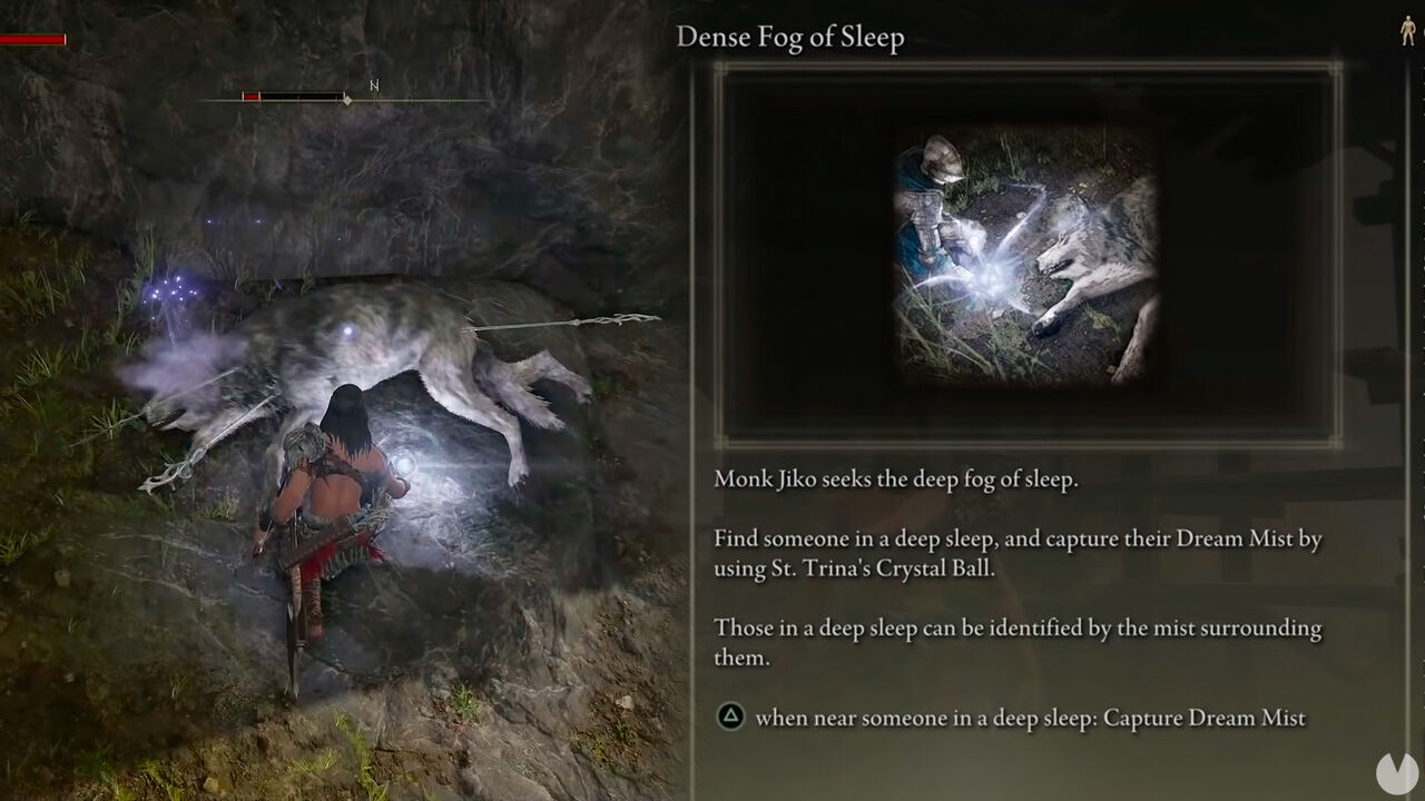 Como habéis podido ver, esta mecánica cortada de Elden Ring nos permitía acercarnos a enemigos durmientes y capturar sus sueños con un objeto especial que tampoco parece estar disponible en la versión final del juego. El objetivo de este sistema sería entregarle la "niebla" de sueño a un NPC que la transformaría en un líquido alcohólico que podríamos darle a otros personajes para conseguir descubrir nuevos secretos del juego.