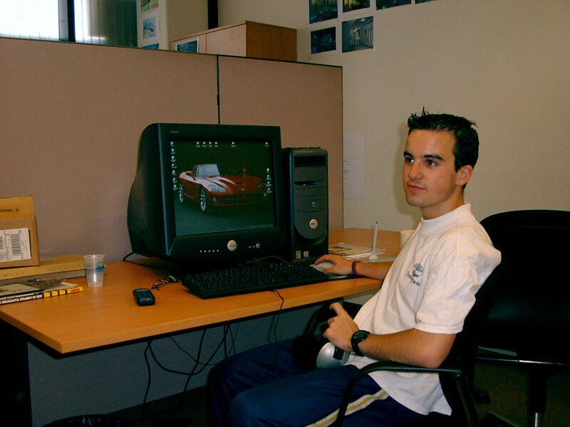 El estudio había terminado el primer Motorstorm y preparaba el segundo juego de la serie. Sampedro encontró un estudio muy diferente a lo que conocía, todo dividido en departamentos y muy jerárquico, "que es como debe funcionar", aclara. Le ofrecieron hacer escenarios, pero prefirió dedicarse a crear objetos y texturas porque se sentía inseguro con el idioma y escenarios implicaba realizar más cambios y participar en más reuniones.