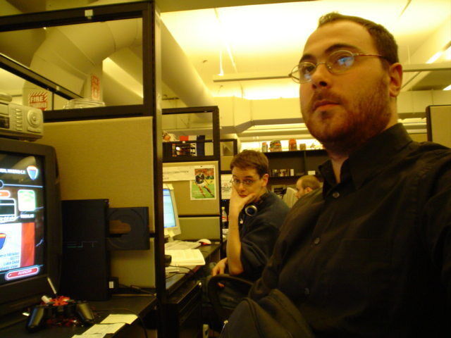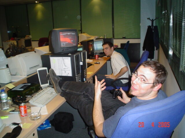 En Dinamic, durante las muchas noches de testeo. Cuando trabajas muchas horas y no descansas hay tensión. En aquella época estaban Los Guiñoles de Canal +. El ministro de exteriores era Abel Matutes, del PP, y me dio por empezar a imitarlo. No al ministro, al guiñol, y empezaba a decir tonterías y nos reíamos. Yo lo hacía para rebajar tensión. Tuve un jefe, al mejor que he tenido, Marcos Jourón, que confió en mí y apostó por mí, hubo varios EREs y me salvó de la quema. Una de las cosas que aprendí de él era a utilizar el humor cuando veas que hay tensión, él se ponía a hacer el payaso, y a mí me funcionaba, la olla dejaba de hervir cuando te pegabas unas carcajadas, era terapéutico. Luego veías a uno haciendo el pino con los brazos. En Dinamic teníamos una cosa que se quitó de moda pero a mí me gustaba mucho, unos biombos personalizados con los puestos de trabajo separado, luego se quitó porque se quería todo diáfano. A mí me encantaba porque a veces querías estar concentado y no escuchando al del otro lado pegando gritos que tenías que ponerte cascos para no oírlo. Yo me ponía pósteres, mis chinchetas con mis post-it, y cuando quería hablar con alguien me echaba la silla para atrás y hablaba.