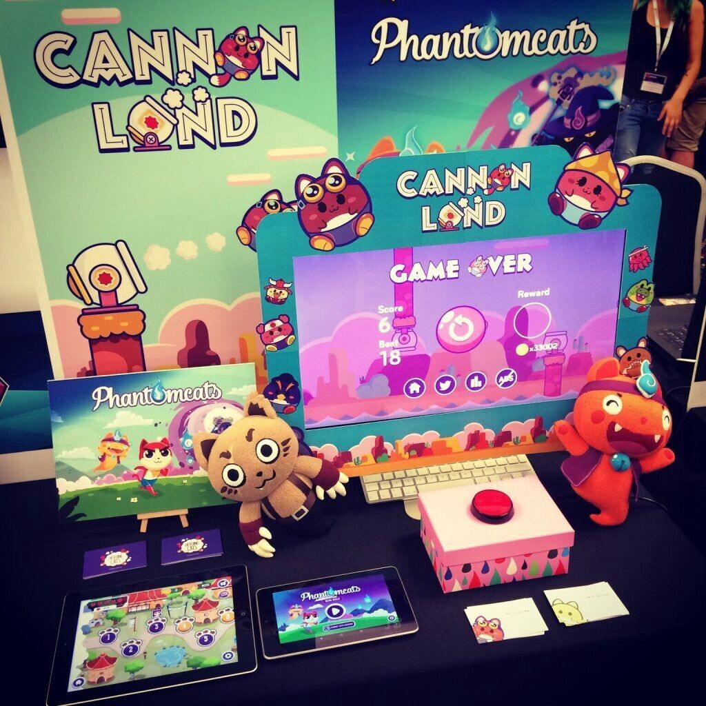 Así, los asistentes a Gamelab utilizaron un pulsador gigantesco situado en la parte superior de una caja de cartón que Laguna convirtió en mando con Arduino, "teníamos colas para jugar y, debido al estilo colorista de mi socio y que a mí me gusta también lo colorista, y que alrededor todo eran shooters, nuestro estand brillaba, el cartel de arriba abajo era azul y rosa, hicimos peluches de Bullet, el gato bala, era Disneyland y era un juego de un gato que disparas y había otros juegos que parecían triple A. Mientras que con el juego anterior estuvimos 6 o 7 meses buscando publisher el primer día de Gamelab encontramos publisher [eRepublik] para este juego. ¿Por qué? Por toda la experiencia vivida, porque llamas la atención y porque es un juego que ya está hecho", nos cuenta.