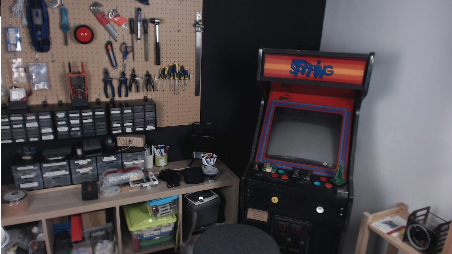 Laguna retransmite desde un diminuto despacho de una oficina compartida con una zona para programar, múltiples libros y videojuegos para dar ambientación y otra de taller para cacharrear en el hardware, ya sea Raspberry Pi, Arduino o consolas antiguas, "reparé una Game Gear en directo sin saber yo mucho de electrónica", informa.