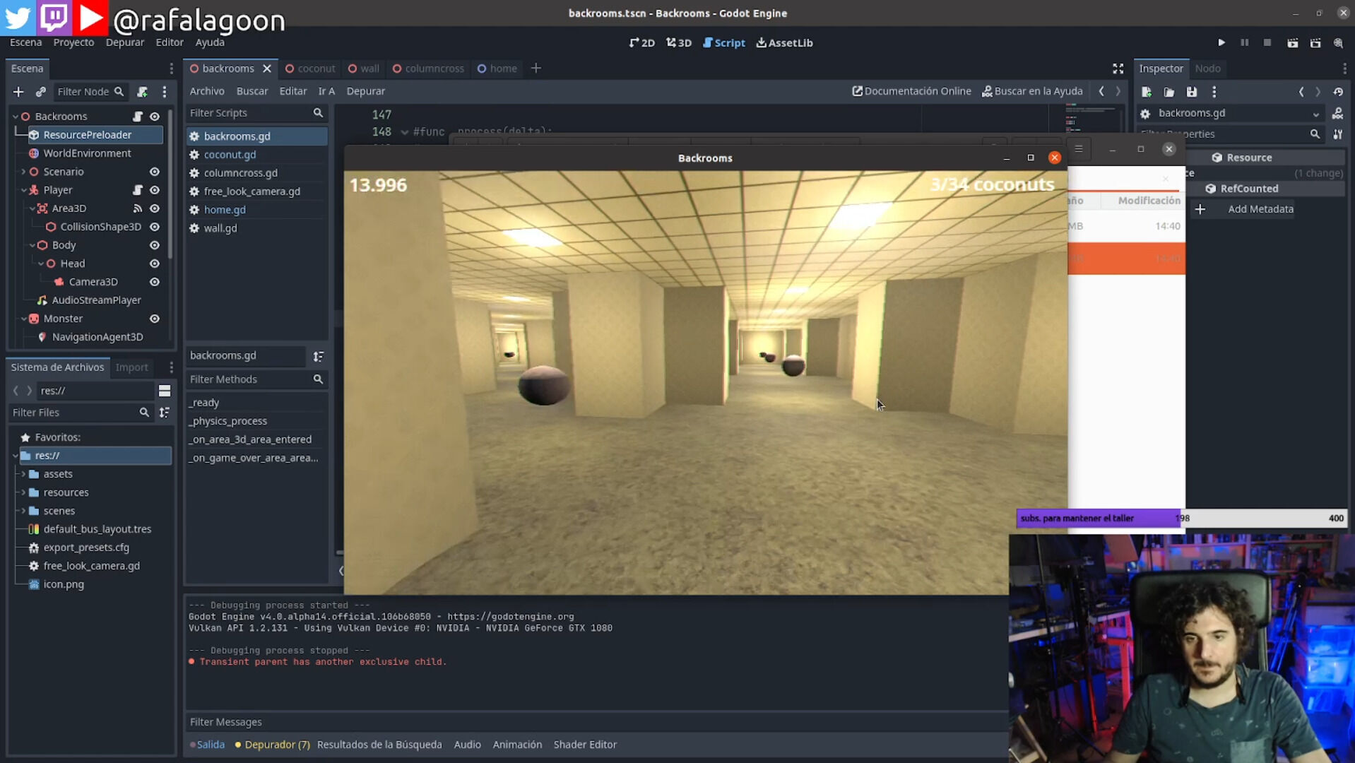 Yo soy Patreon de Godot, posiblemente me haya gastado más dinero en estos tres o cuatro últimos años que mucha gente en Unity porque quiero que se siga haciendo. No me importa pagar y seguir pagando, es mi herramienta principal y quiero que sea mejor, pago porque quiero, no porque me obliguen ni haya hecho un curso para que me enseñen Unity y luego saque mi juego y tenga que pagarles royalties. Y quiero que mi dinero repercuta no solo en mí, también en todo el mundo, y no solo juegos. Mari Carmen está hecha en Godot y está incrustada en OBS.
