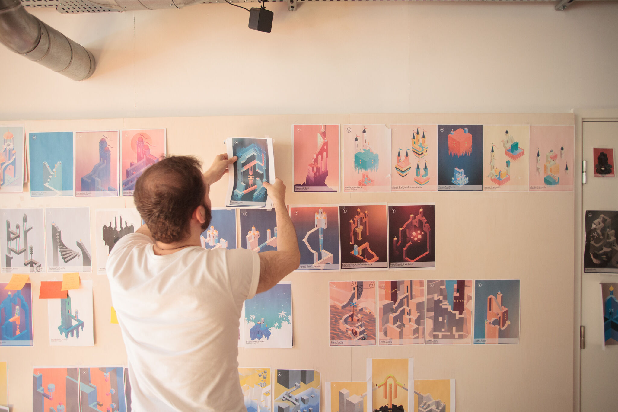 Fernández informa de unos detalles que para él fueron relevantes: "Cuando dejé Akaoni empecé a trabajar en el documento de un juego de ballenas de colores destruyendo barcos. Un amigo que sabía que estaba trabajando en eso me preguntó si había visto un juego que se llamaba Whale Trail, de una ballena en 2D con una estela detrás. Era un juego de Ustwo. El lead artist que tenía Ustwo era Ken Wong, que había sido el director de arte de Spicy Horse en Alice: Madness Returns, cuando empecé a buscar trabajo en videojuegos uno de los e-mails que envié fue a Spicy Horse y me contestó Ken. Eran muchas coincidencias. Me llevaron a ver el estudio y era como en las películas, que abren las puertas, ves el batiburrillo, imágenes por todas las paredes. Era open-plan fui a la cocina y había un chico haciéndose unas tostadas con mermelada y me ofreció una, era como la película en la que Owen Wilson entra de becario en Google, justo igual. Me enseñaron en lo que estaban trabajando, un prototipo de lo que luego sería Monument Valley y tenían un meeting con uno de los dueños de la empresa y me preguntaron si quería ir y claro [que fui]. Me preguntaron qué me había parecido el juego y pensé que dependiendo de lo que dijera podían darme el trabajo o no. Les dije que estaba guay pero me parecía un poco frío. No sabía si querían a alguien que les dijera que sí a todo o alguien con el que tener una conversación y tener desacuerdos".
