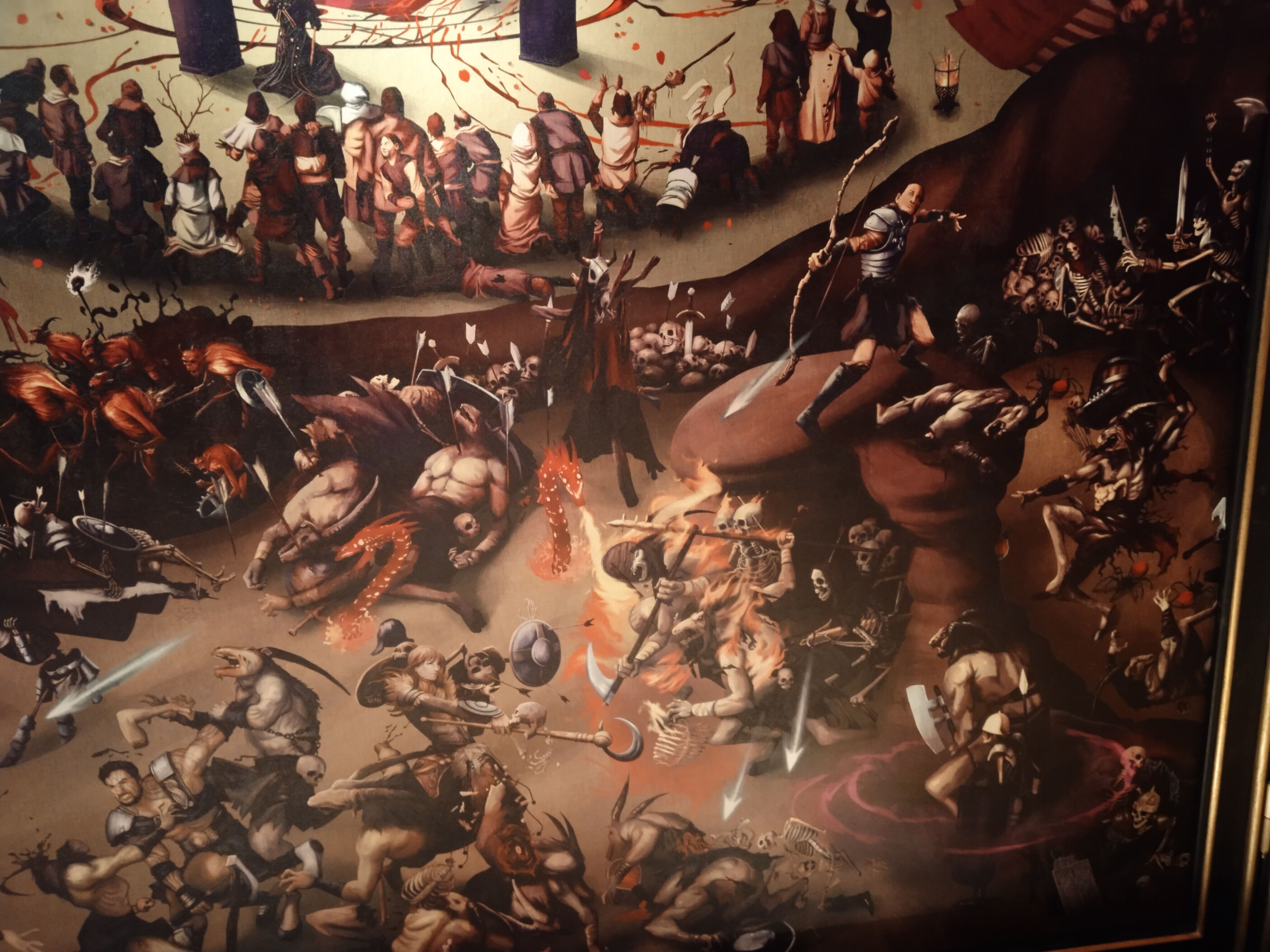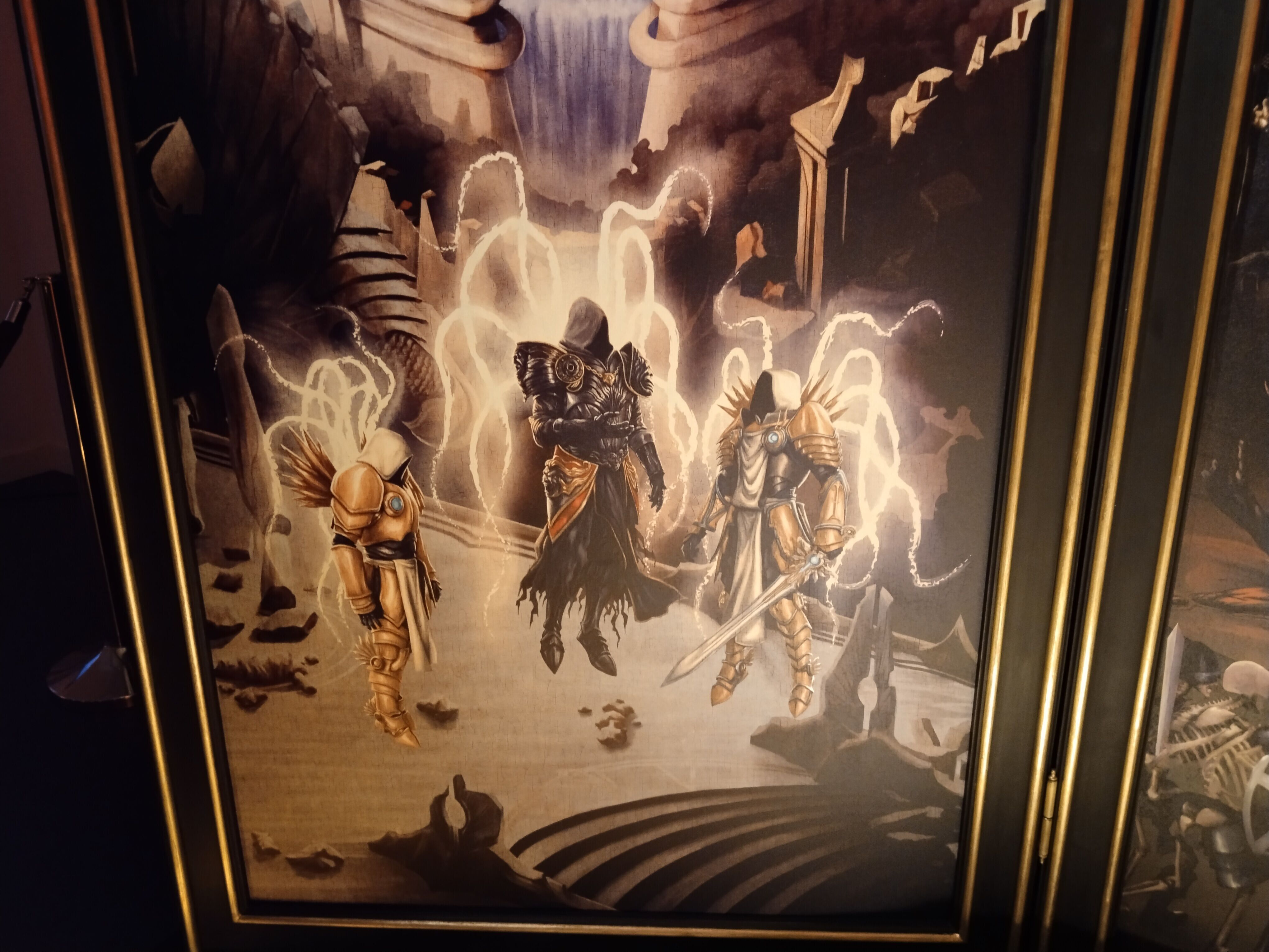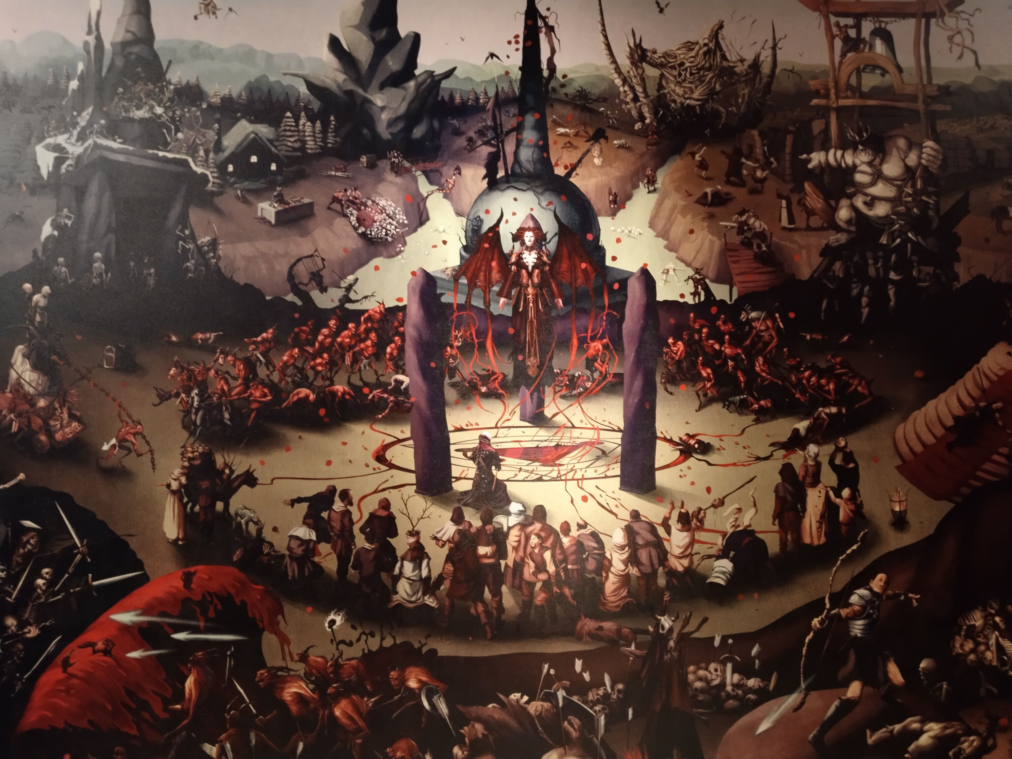 El tríptico El Jardín del Infierno cuenta la historia del regreso de Lilith, la Hija del Odio, sedienta de venganza que se cuenta en Diablo IV, corrompiendo las almas que se encuentra en su camino. En el cuadro pícaras, nigromantes, bárbaros, druidas y hechiceras luchan contra los esbirros de Lilith, que ocupa la parte principal del panel central y se convierte en el foco de atención atrayendo hacia el mal a todos los campesinos que la rodean en un discurso demoníaco representado con pétalos mientras, a sus pies, los luchadores intentan evitarlo. Inarius, el ángel que escapó del Infierno, aparece en los paneles laterales, en el izquierdo combatiendo las fuerzas de la oscuridad.