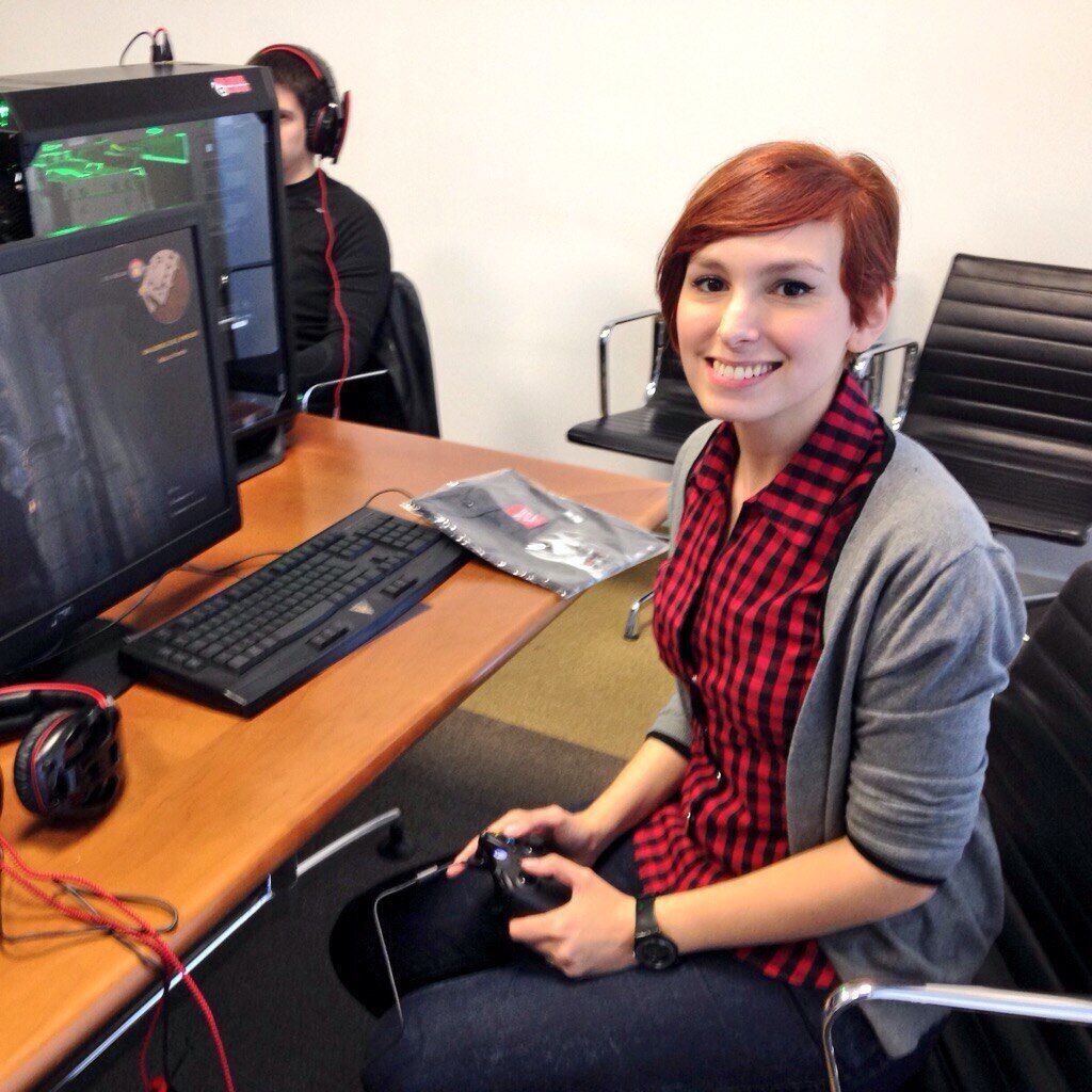 Comenzó a trabajar en videojuegos con un distribuidor informático, una experiencia muy instructiva a alto coste. Según describe, "entré para hacer de todo, comunicación, redes sociales, hacía noticias para su blog, me grababa yo misma un programa que se llamaba Reload, me hacía el guion, lo editaba yo, lo subía a redes, hacía parte de PR porque también había que gestionar las muestras que se enviaban de hardware y de periféricos. Es una etapa en la que aprendí muchísimo pero casi me muero del estrés".