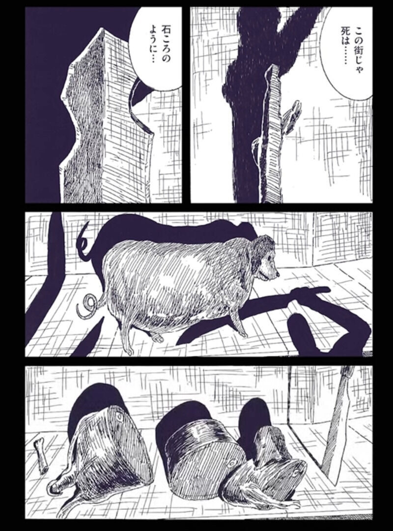 De la página que salía en el vídeo de Archipel dice Eufrasio: "Me interesan las dos últimas viñetas, en una se ve un perro-oveja y en la de abajo se ve al bicho troceado de una manera bastante cómica. Aquí no hay una equipo de 39 personas trabajando, es el dibujo de una persona y está transmitiendo una barbaridad. Empiezo a interesarme una barbaridad por el cómic, muchísimo, porque hay un montonazo de código visual rico que no se usa en el videojuego y que es barato. Barato en el sentido de que es rápido de hacer y accesible a todo el mundo. Una cosa que suelo decir siempre cuando enseño a la gente a hacer videojuegos es que tienen que hacer Blasphemous en dos días; es decir, no quiero que hagan un juego tan grande, no quiero que hagan una proeza a ese nivel artístico, que es una barbaridad de trabajo. Lo que quiero es que consigan transmitir lo mismo porque, al final, según lo que yo he aprendido, es lo que cuenta, la curva de emociones. Por eso no hace falta una habilidad técnica en el dibujo impresionante, la habilidad es saber transmitir, que es un apartado bastante complejo".